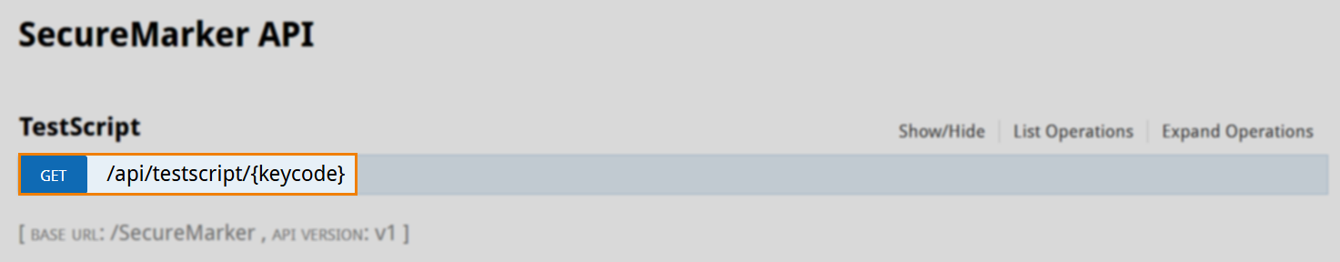 All of the available SecureMarker OAPI resources are listed on the Swagger console page.