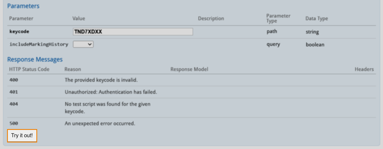 The SecureMarker OAPI Swagger console therefore lets you test the SecureMarker OAPI by directly sending a HTTPS request to any of the available endpoints for your instance of Surpass. It automatically generates the endpoint URL, header parameters, and request body, leaving you to complete/amend any parameters and properties as needed.