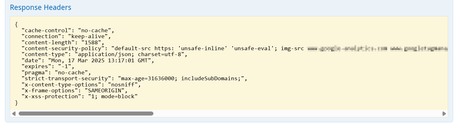 Lastly, returned Response Headers can be found.