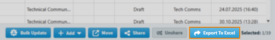 IMPORTANT: You must have the Item Lists Export permission to export items to Excel from the Item Lists screen. For more information, read About roles and permissions.