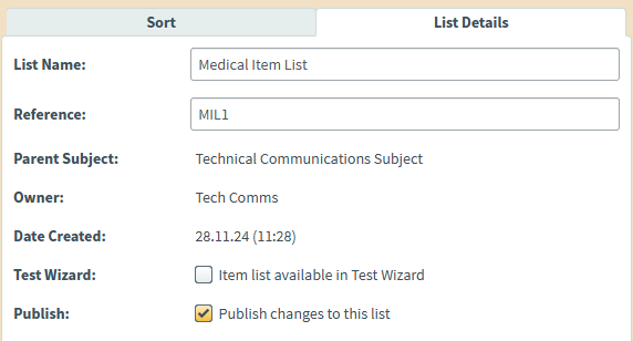 | Test Wizard | Determines whether the item list is available for selection when creating a test form in the Test Wizard. |