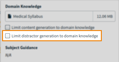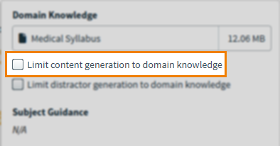 Domain knowledge files and guidance on the subject, question stem, and answer options can be provided at subject-level. You can choose whether to limit Copilot’s data source to the uploaded domain knowledge.