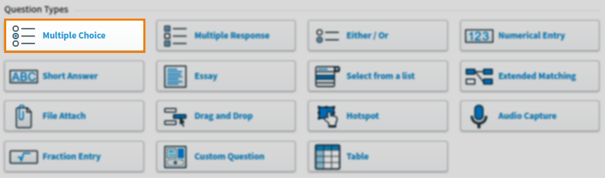 A Multiple Choice question offers candidates a set of possible answers to a problem. One of these answers is the correct answer and the others are plausible but incorrect answers (also known as distractors). Candidates can select one answer option as their response.