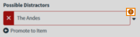 If the correct answer or any distractor answer options were generated from an external source, an exclamation mark icon is displayed on the corresponding answer option.