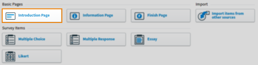 An Introduction Page is a non-scored item that appears to candidates before a test begins in an introduction section. You might want to use Introduction Pages to communicate any information or instructions candidates need to know before taking the test. Time spent on Introduction Pages is not counted on the main test timer.