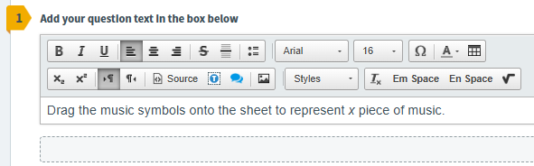 Enter your question text in the question stem. Select Add text Area to add an additional question stem. You can have a maximum of five question stems per item.