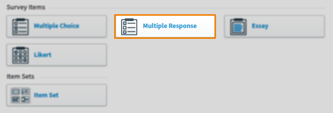 In your subject, select Create New Item to open the Survey Items menu. Choose Multiple Response to create a blank Multiple Response survey item and go to the Edit screen.