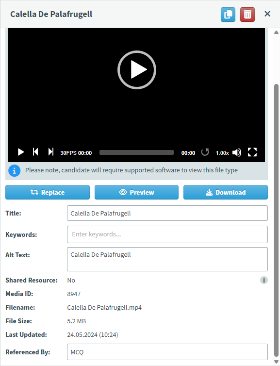 NOTE: The media label displayed to candidates can be edited after the media is added to an item.