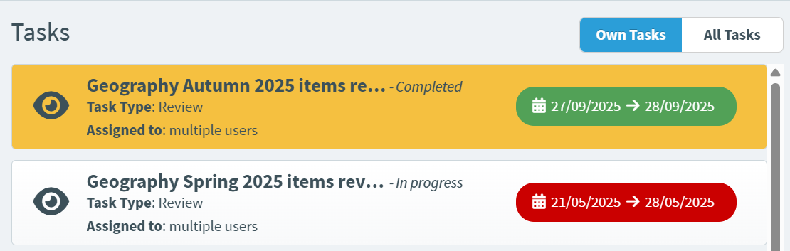 Go to the Tasks section of Surpass and select the Review task you want on the Tasks list.