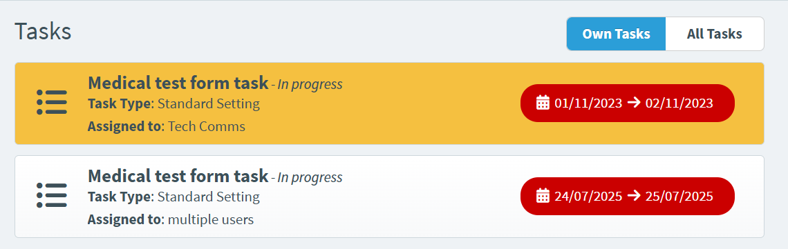 Go to the Tasks section of Surpass and select the Standard Setting task you want on the Tasks list.