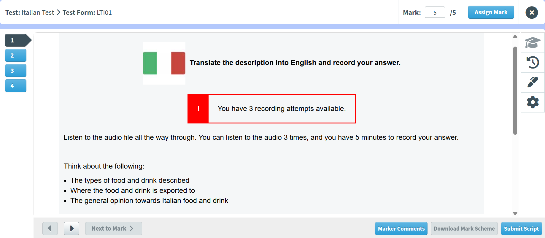 For full instructions on how to mark a script, read ‘4. Mark the item’ in Marking a script in the Mark screen.