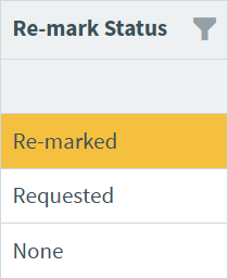 In the Re-mark screen, you can review and re-mark scripts. This includes re-assigning marks, adding comments, and viewing the marking history of items in a test.