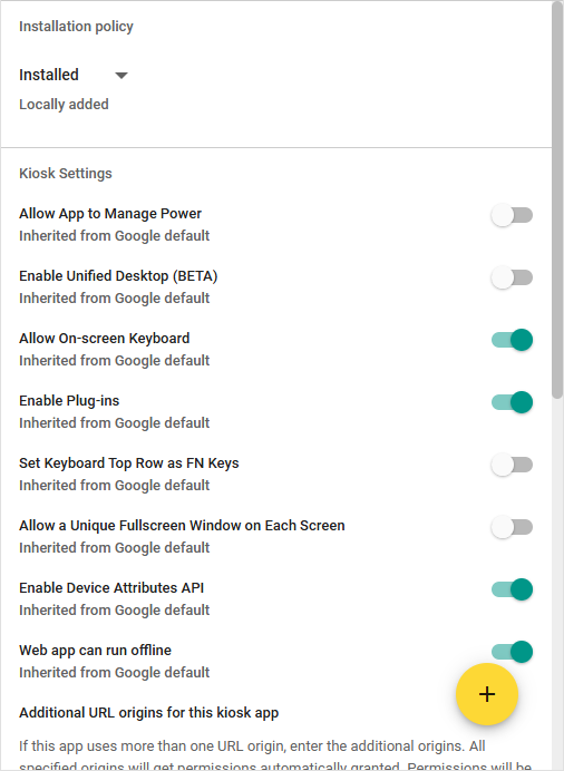 Configure your Installation Policy and Kiosk Settings per your own specifications.