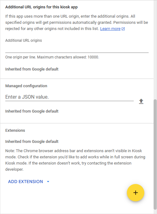 A Surpass Chrome extension must be added to the kiosk application to apply the relevant Surpass authentication, authorisation, and other settings upon test delivery. This extension identifier is ddimmdpkdphpeneldnjmjlfmahafjfhi and the URL where the extension is hosted is https://extension.surpass.com/updates.xml.