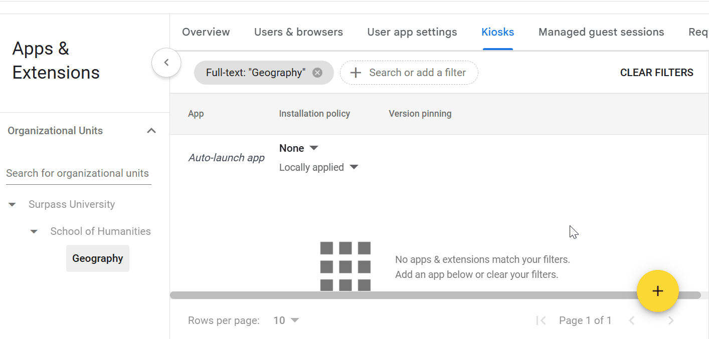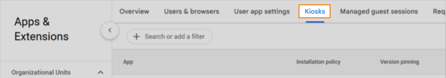 Select the Kiosks tab in Apps & Extensions.