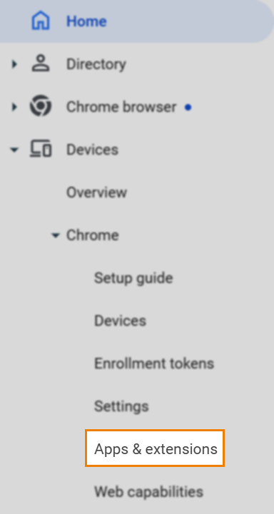 To view Apps & Extensions, go to Devices > Chrome > Apps & Extensions.