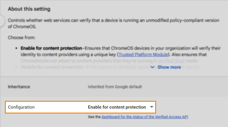 To set up Chromebook secure browser delivery as an administrator, you must have a device registered with a Google Workspace domain (Enterprise or Education) with ChromeOS device management (Chrome Education Upgrade).