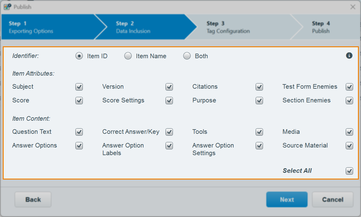 In Step 2 – Data Inclusion, choose what data to include in your spreadsheet.