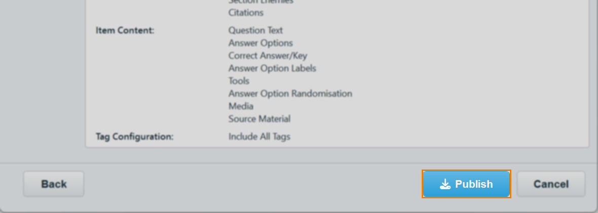 For information on the Pearson VUE QTI format option, read Publishing items for Pearson VUE.