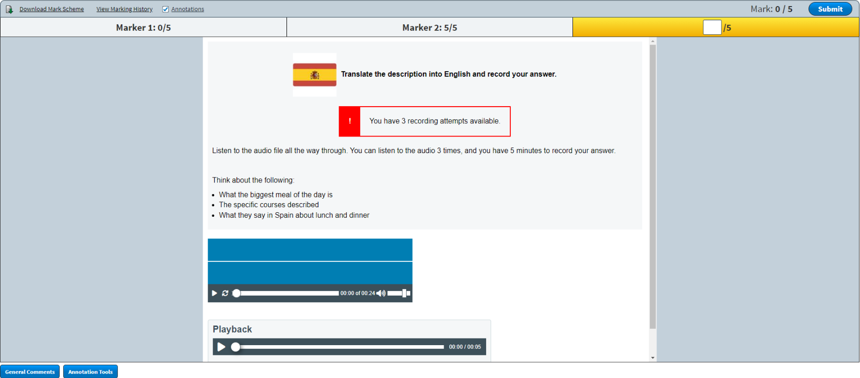 Select Download Mark Scheme to download a mark scheme attached to the item. Mark schemes are uploaded to items in Surpass. For more information, read Uploading a mark scheme to an item.