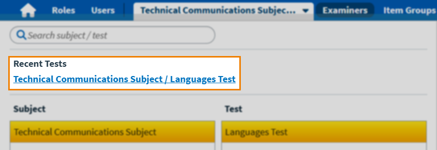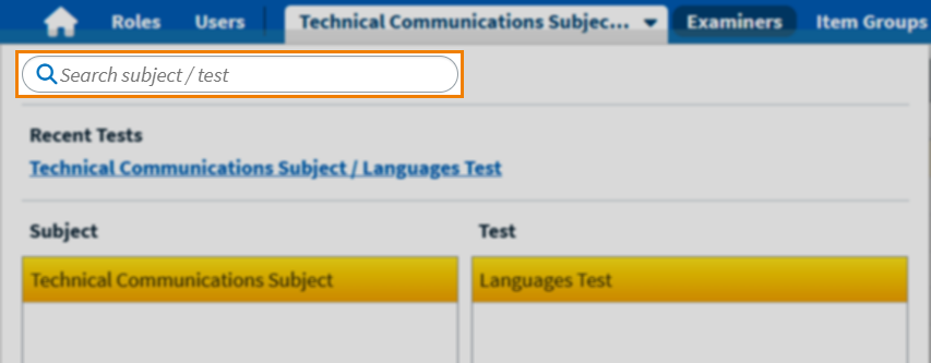 To select a particular exam, first select the relevant subject in the Subject list and then choose the test from the Test list.