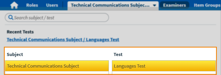To select a particular test, first select the relevant subject in the Subject list and then choose the test from the Test list.
